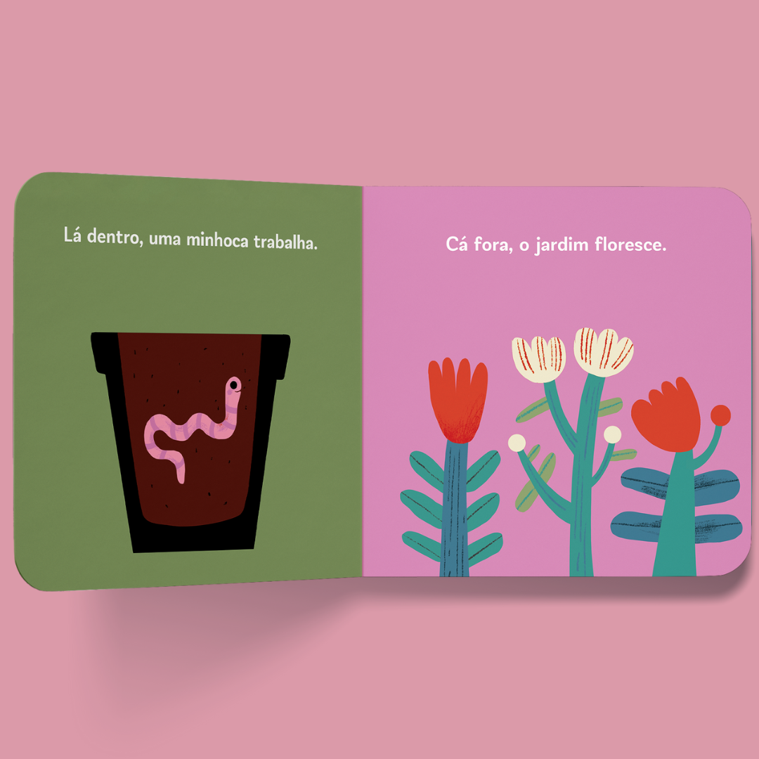 Este livro permite que as crianças brinquem e reflitam sobre a conexão entre a natureza das coisas e a ligação entre o interno e o externo a partir de diversas perspectivas, estabelecendo um diálogo entre seres vivos e as suas necessidades. Como as coisas estão conectadas umas às outras? Um convite para que as crianças associem o que vemos e o que não vemos, o que está dentro e o que está fora, estimulando assim sua curiosidade.